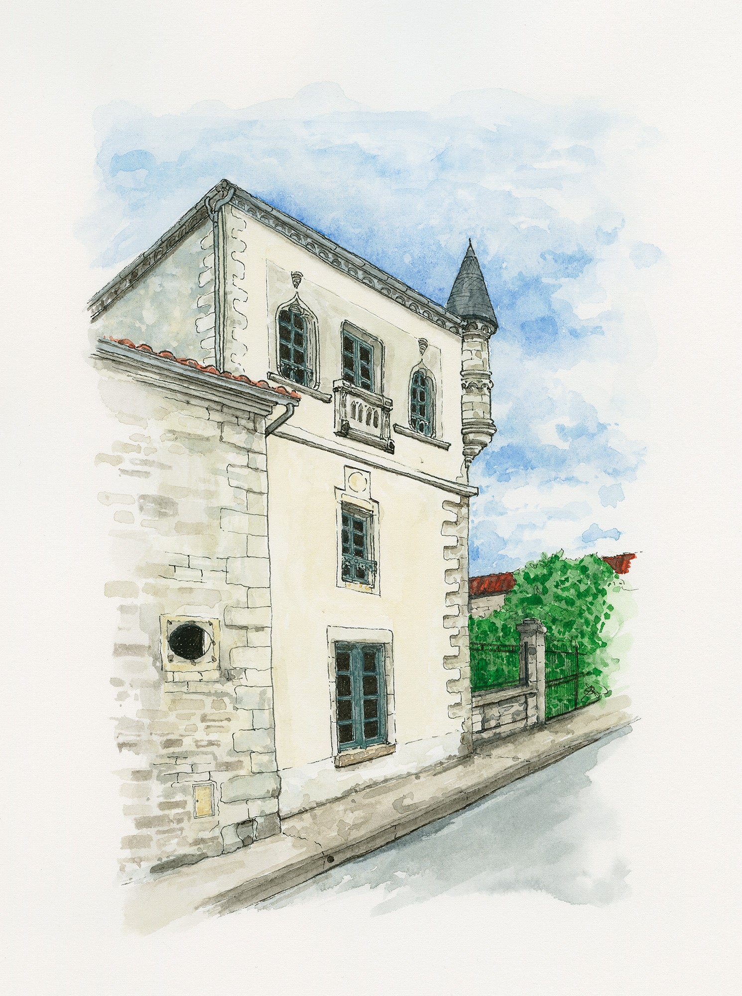 Elevate your space with this exquisite print of La Maison au 24 in Tusson, France. Meticulously crafted with attention to detail, it captures the essence of the original watercolor and ink masterpiece. Offered in various sizes and featuring a delicate white border, this print is a refined addition to any room. Printed on premium 310g mat paper, it exudes luxury and sophistication. Each piece comes carefully packaged in a protective sleeve and reinforced envelope for a secure and elegant delivery. Indulge in this opulent display of art.