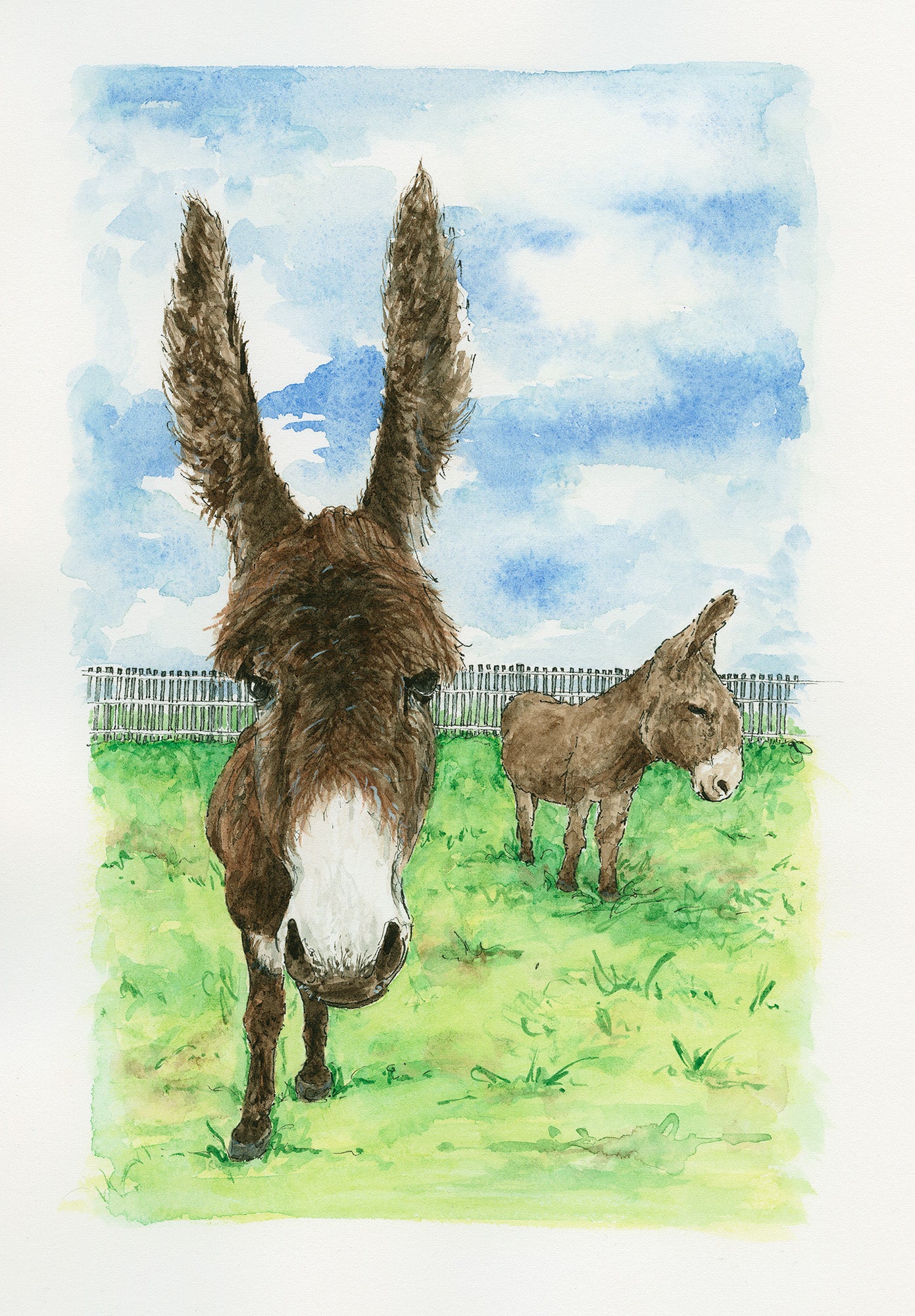 Introduce yourself to the charming Les Ânes of Tusson, France. Meticulously crafted with an unwavering focus on precision, it embodies the very essence of the original watercolor and ink masterpiece. Available in various sizes and adorned with a delicate white border, this print exudes elegance and grace in any space. Printed on luxurious 310g mat paper, it emanates opulence and sophistication. Carefully encased in a protective sleeve and reinforced envelope, each piece is delivered with utmost refinement. Treat yourself to this lavish representation of a couple of super cute guys.